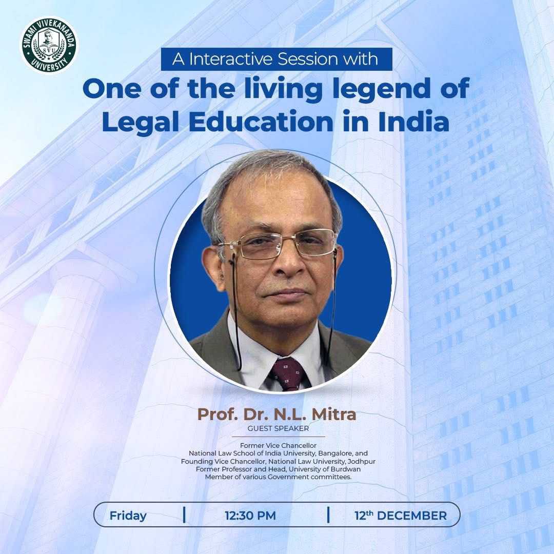 Holistic Student Development: Focus on ethical values, leadership, communication, and personality development in line with the ideals of Swami Vivekananda.Supportive mentorship, career counseling, and placement guidance to help students reach their full potential.Empower yourself with knowledge, stand for justice, and build a career that matters — at the Department of Legal Studies, Swami Vivekananda University.